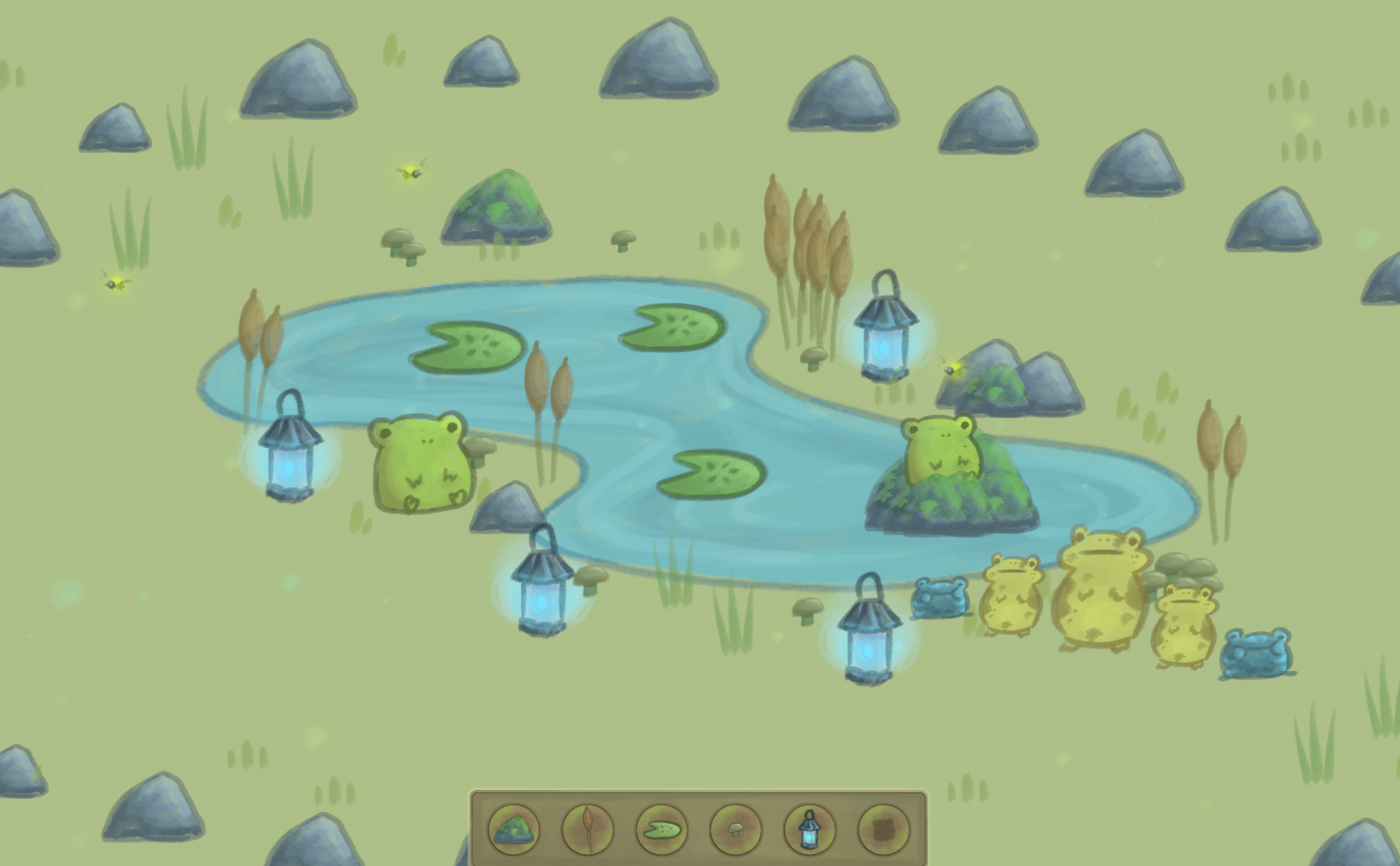 Just a cozy game about creating a little wetland area for some frogs. Enjoy~